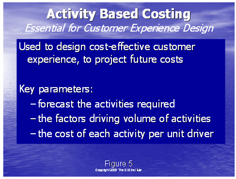 通過了解圖8,我們將以行動成本管理大體是什么的總括作為結束。我們從左邊的成本驅動因素開始——這是做工作的原因,例如:獲得客戶,維持客戶。就如圖4中所說的,這些成本驅動因素可以細分到工作行動上去?梢酝ㄟ^描述人,培訓,設備和技術資源來組成工作行動。資源驅動因素被用于分配這些企業(yè)成本到各個行動上去。下一步就是系統(tǒng)地確定行動驅動因素,分配行動成本到成本對象上去,這有利于決策的制定。例如,獲得一個客戶和維持一個客戶需要花費多少的成本?