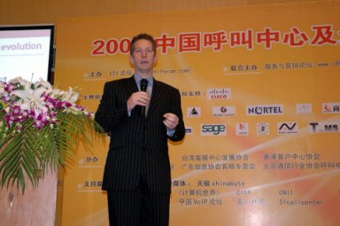 2007年4月18日至20日,2007中國(guó)呼叫中心及企業(yè)通信大會(huì)在上海光大會(huì)展中心國(guó)際大酒店隆重召開,以下是主題演講實(shí)錄: 主持人(李京成):謝謝張琳女士的精彩發(fā)言。她的演講讓我們開拓了眼界。時(shí)間有限,下面請(qǐng)出另外一位重量級(jí)的演講者就是亞太區(qū)最佳呼叫中心評(píng)委主席葛賽文先生,他演講的題目是“呼叫中心的平衡演進(jìn)與能力退出”,那么協(xié)助他演講也是我們大家的老朋友,豐祖軍先生,他超凡的語(yǔ)言魅力在座的很多朋友都感受過(guò),有請(qǐng)兩位先生。